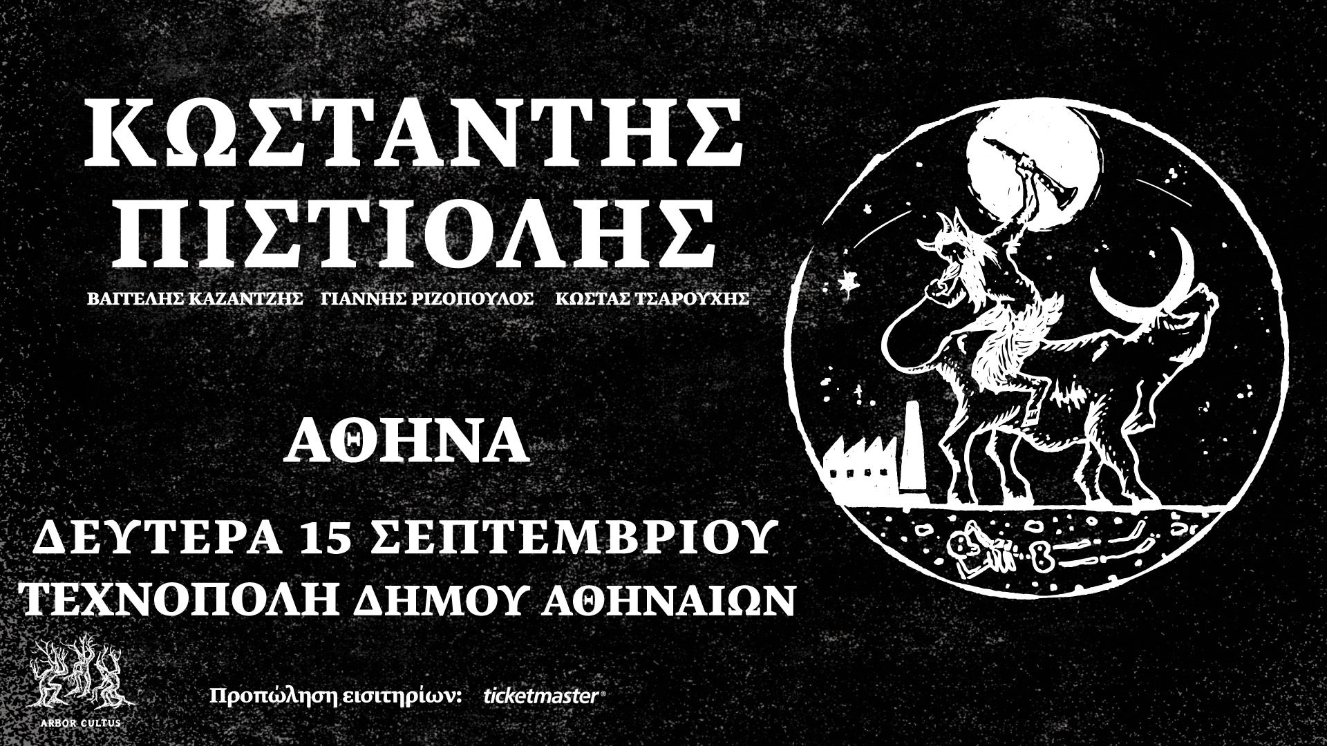 Την Δευτέρα 15 Σεπτεμβρίου ο Κωσταντής Πιστιόλης εμφανίζεται μαζί με τους συνεργάτες του στην Τεχνόπολη του Δήμου Αθηναίων σε μια συναυλία που περιλαμβάνει τραγούδια από την πρόσφατη δισκογραφία του αλλά και από την υπόλοιπη μουσική δουλειά του. Παραδοσιακοί ήχοι και γνώριμες μελωδίες εναρμονίζονται με ηλεκτρικούς και πειραματικούς αυτοσχεδιασμούς, δημιουργώντας άλλοτε απόκοσμα και άλλοτε εκστατικά ηχοτοπία. Η μουσική του μας συνοδεύει από την γνωριμία μέχρι την μύηση και από εκεί έως την κάθαρση μέσα από ένα κυκλωτικό γλέντι.