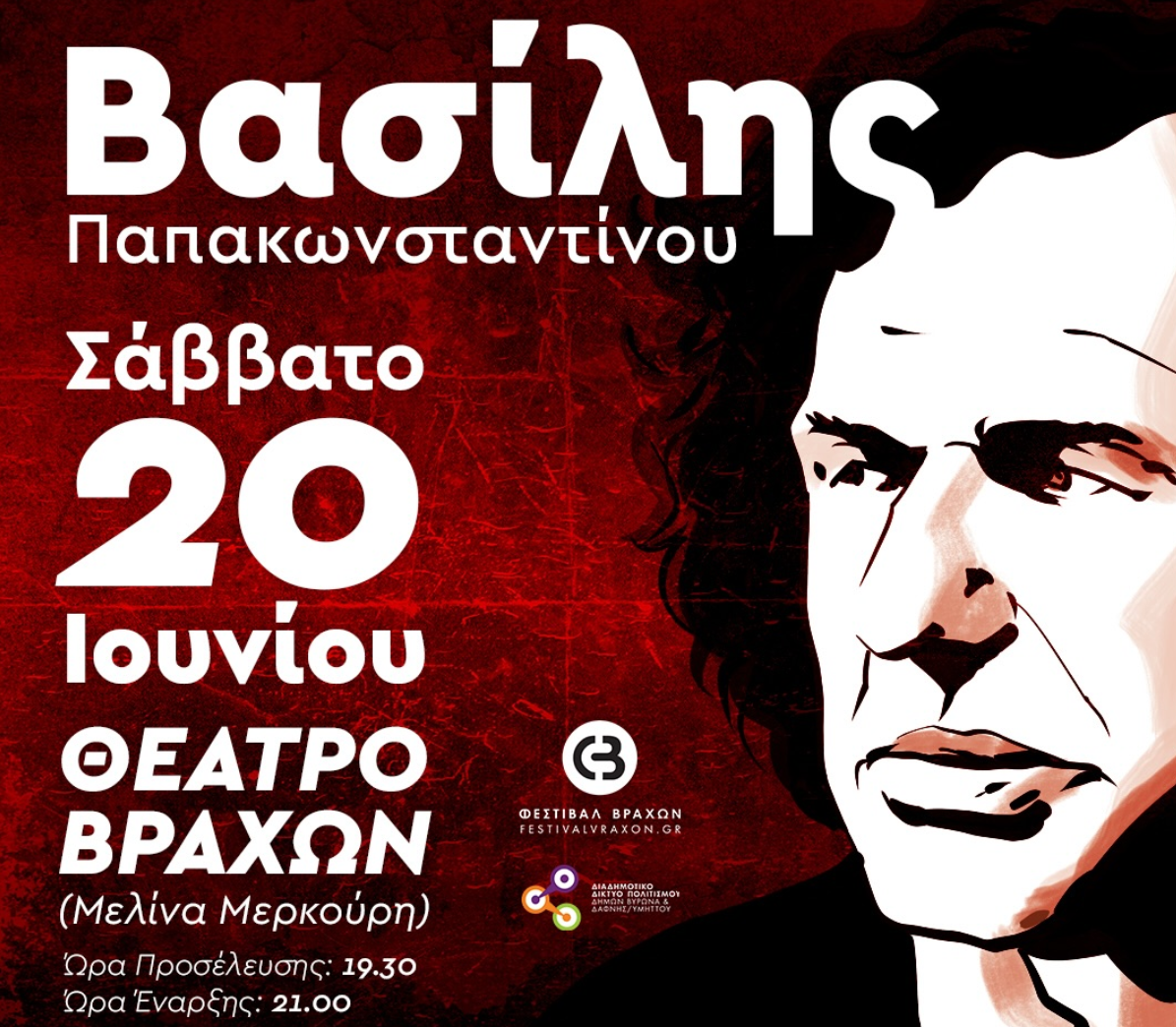 Το Σάββατο 20 Ιουνίου ο Βασίλης Παπακωνσταντίνου πιστός στα καλοκαιρινά του ραντεβού ανεβαίνει στη σκηνή του Θεάτρου Βράχων «Μελίνα Μερκούρη», για μια μεγάλη συναυλία με τραγούδια – σταθμούς και με ένα κοινό που τον κουβαλά μέσα του – από γενιά σε γενιά.