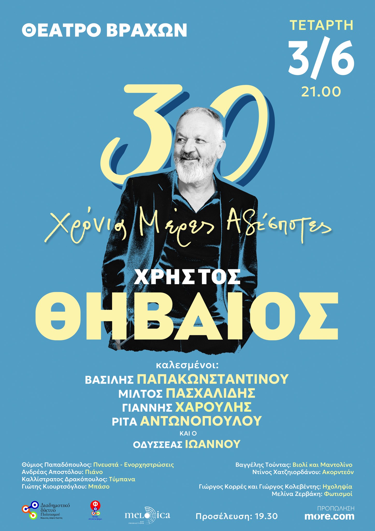 Ο Χρήστος Θηβαίος γιορτάζει τα 30 του χρόνια στη δισκογραφία στο Θέατρο Βράχων «Μελίνα Μερκούρη την Τετάρτη 3 Ιουνίου στις 21:00»